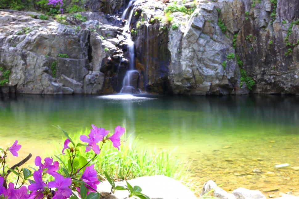 폭포와 수달래